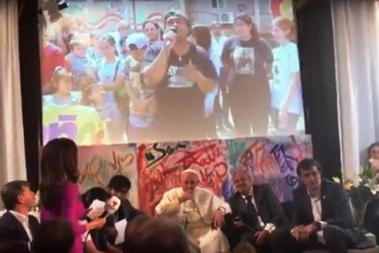 Jóvenes de la villa de Retiro cantaron un rap que escuchó Francisco por videoconferencia. Fue en la inauguración de una sede de Scholas.