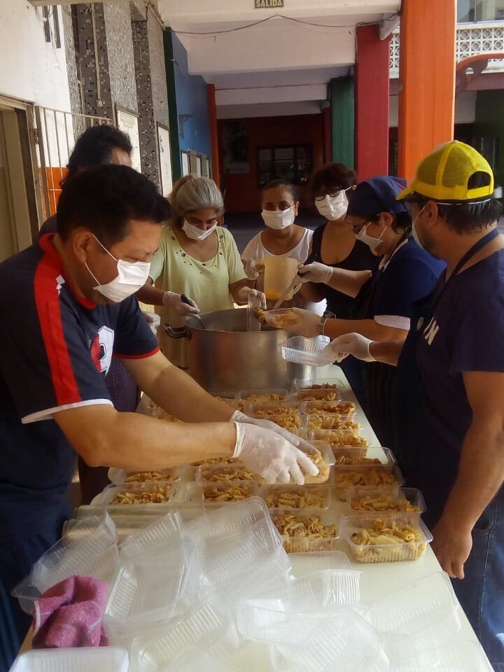 A partir del decreto de aislamiento social preventivo y obligatorio, en la obra San Juan Evangelista del barrio de La Boca, Buenos Aires, se ha incrementado el servicio del comedor Mamá Margarita, que ofrece el almuerzo los domingos a gente en situación de calle o necesidad apremiante.
