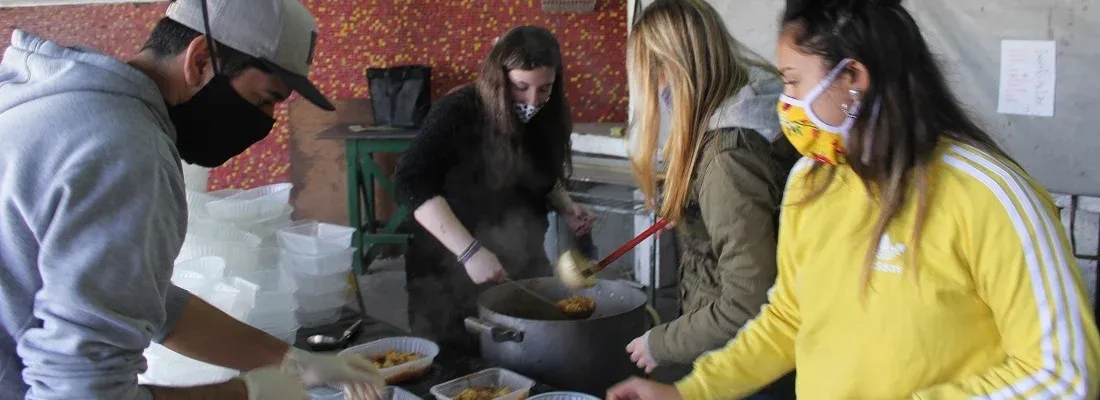 “Los jóvenes querían hacer algo —cuenta Leonel Mantía, encargado de pastoral—. Habíamos hecho antes cuatro mil barbijos para repartir en los comedores de las Casas Salesianas que ya venían entregando viandas. Cortábamos las piezas y llevábamos a cada uno para que los cosiera en la casa. Acá pasó lo mismo. Llevamos las verduras, las cortaban y las pasábamos a buscar”. ¿El resultado? Un locro para distribuir en viandas el 24 de mayo entre los lugares del barrio que más lo necesitaban.